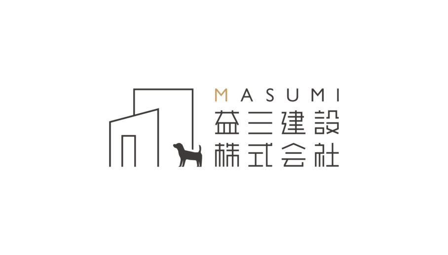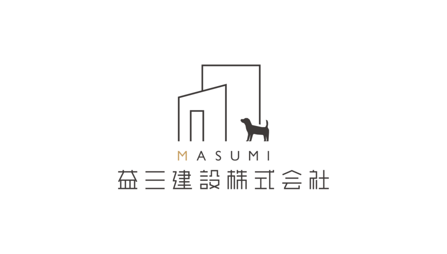 マークは益三をマス×3と掛け、3つの四角の組み合わせにより構成され、3つの四角はそれぞれ違ったプロポーションにすることで、モダンな住宅をイメージさせる形となる。一般的な家型ではないアプローチで家づくりの会社とわかるよう意図している。